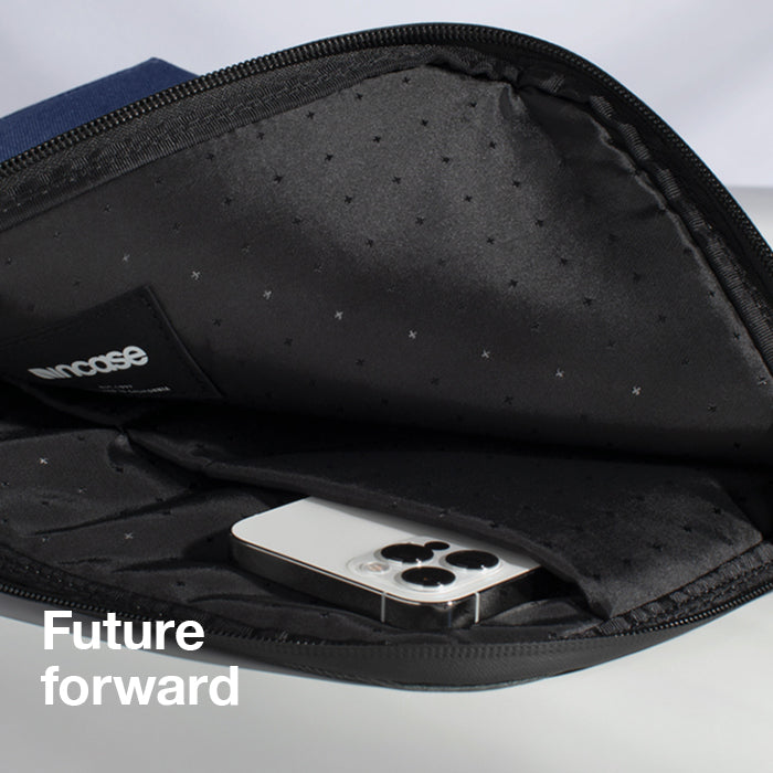Designed to show off the shape of your device while never compromising on style or protection. Made with recycled twill and an internal organization pocket to store cords, accessories, papers, and more.